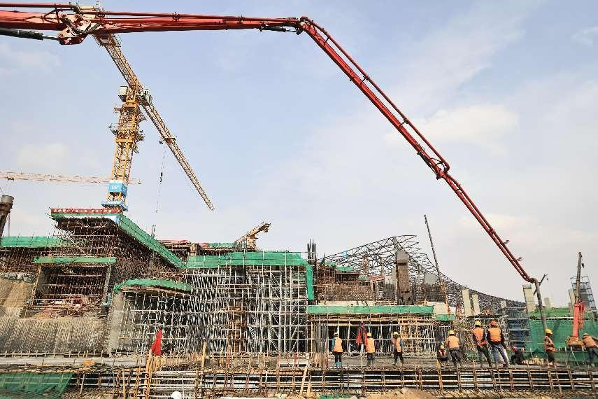 同样作为省列重点项目的兰州中川国际机场三期扩建市政配套工程也于4月底迎来重大施工节点,机场航站楼施工交叉区域结构封顶,实现机场航站楼区域与市政配套工程施工顺利对接。目前正在进行GTC换乘中心投影区域下部的地铁箱涵结构施工及地铁换乘趁魅站隶属工程施工,预计2022年底全面完成建设任务。
