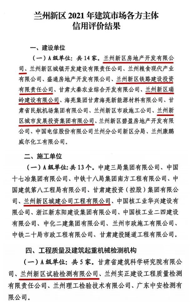 近日,兰州新区城乡建设和交通治理局宣布了《关于宣布兰州新区2021年建筑市场各方主体信用评价结果见告的函》(新城建交〔2022〕218号),k8凯发天生赢家一触即发集团及5家子公司获评兰州新区2021年建筑市场A级主体信用品级。