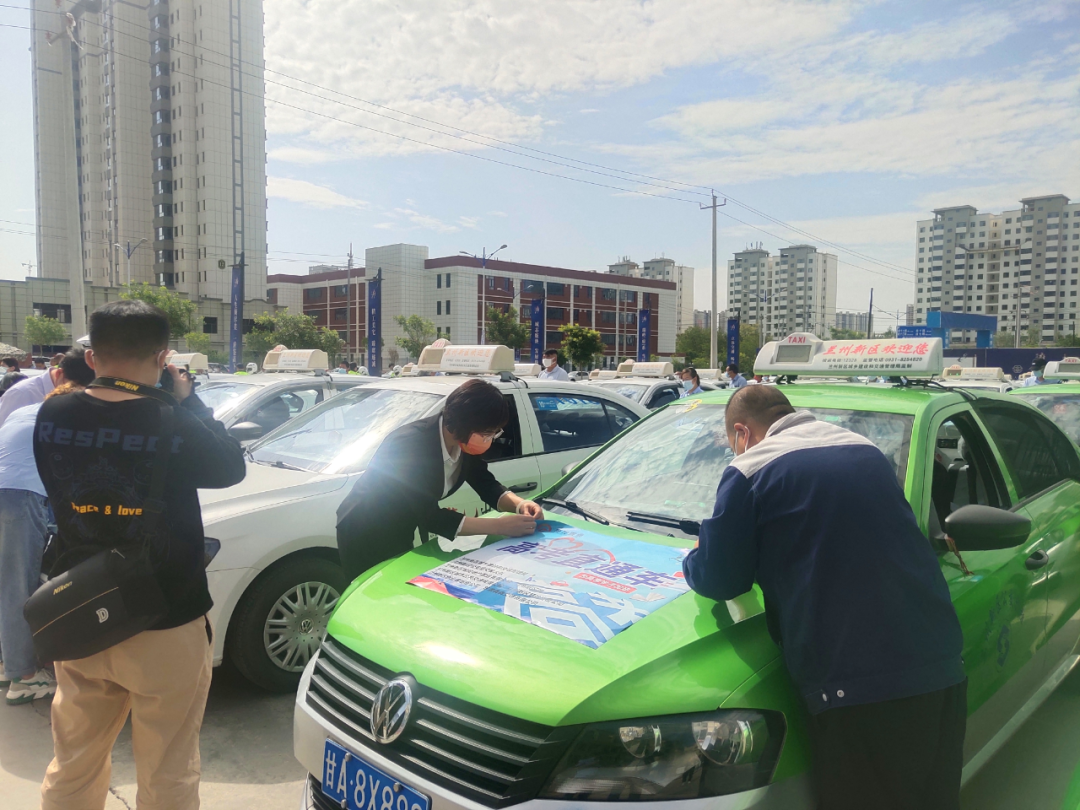今天上午9:30,发车仪式正式开始,出席运动的领导嘉宾为车辆贴上了爱心车贴,兰州新区市政出租公司有限公司驾驶员魏世宝代表爱心志愿者宣誓。