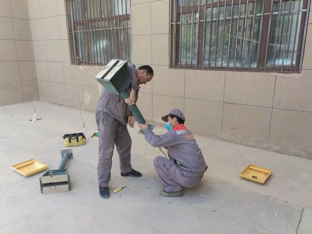 充电设备装置前,项目人员实地考察,对用电量、可拓展区间及装置位置进行了测算及确定,合理计划停车区域,快速制定施工计划。工程人员加班加点对停车区域开展画线、地桩装置、线管埋设、设备牢固等事情,同时加装非机动车车棚,高效推进施工进度。目前已装置 57个充电桩,其余25个正在装置中。