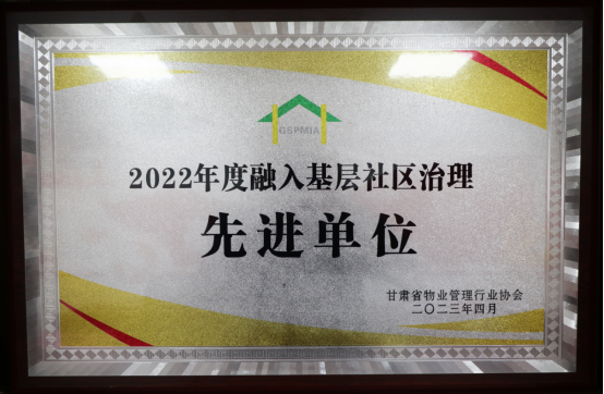 瑞岭物业荣获甘肃省物业治理行业协会“先进单位”