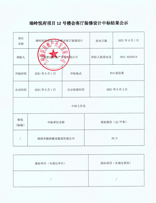 • 瑞岭悦府项目12号楼会客厅装修设计中标结果公示