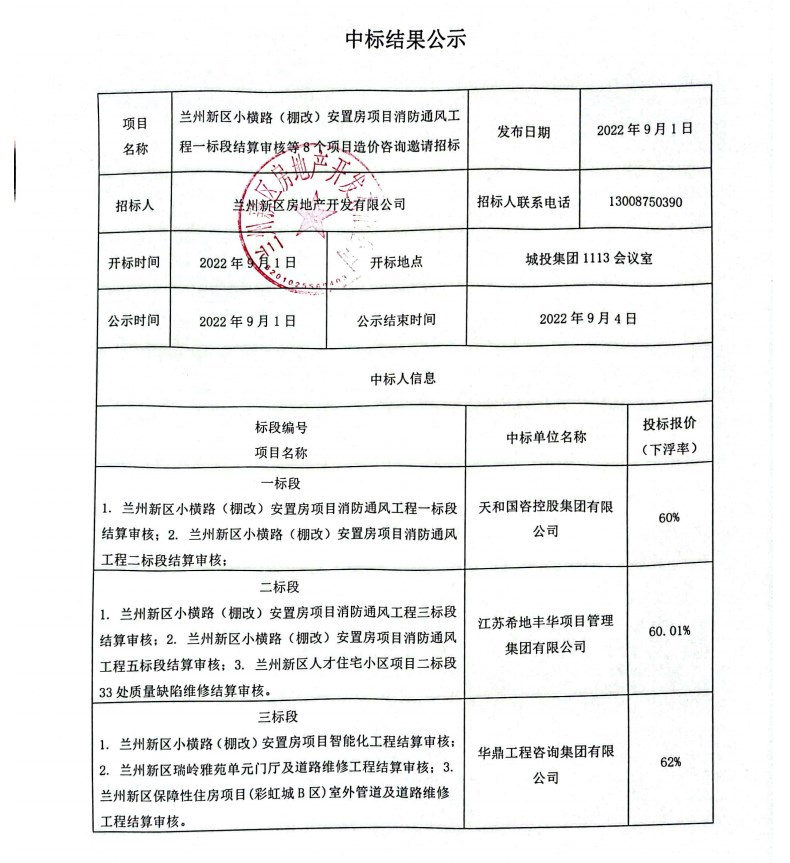 兰州新区小横路(棚改)安顿房项目消防通风工程一标段结算审核等8个项目造价咨询邀请招标