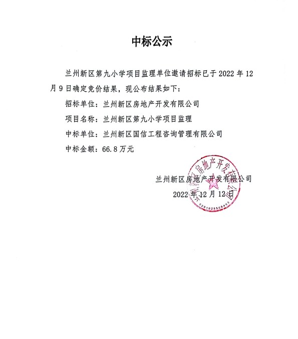 • 中标公示